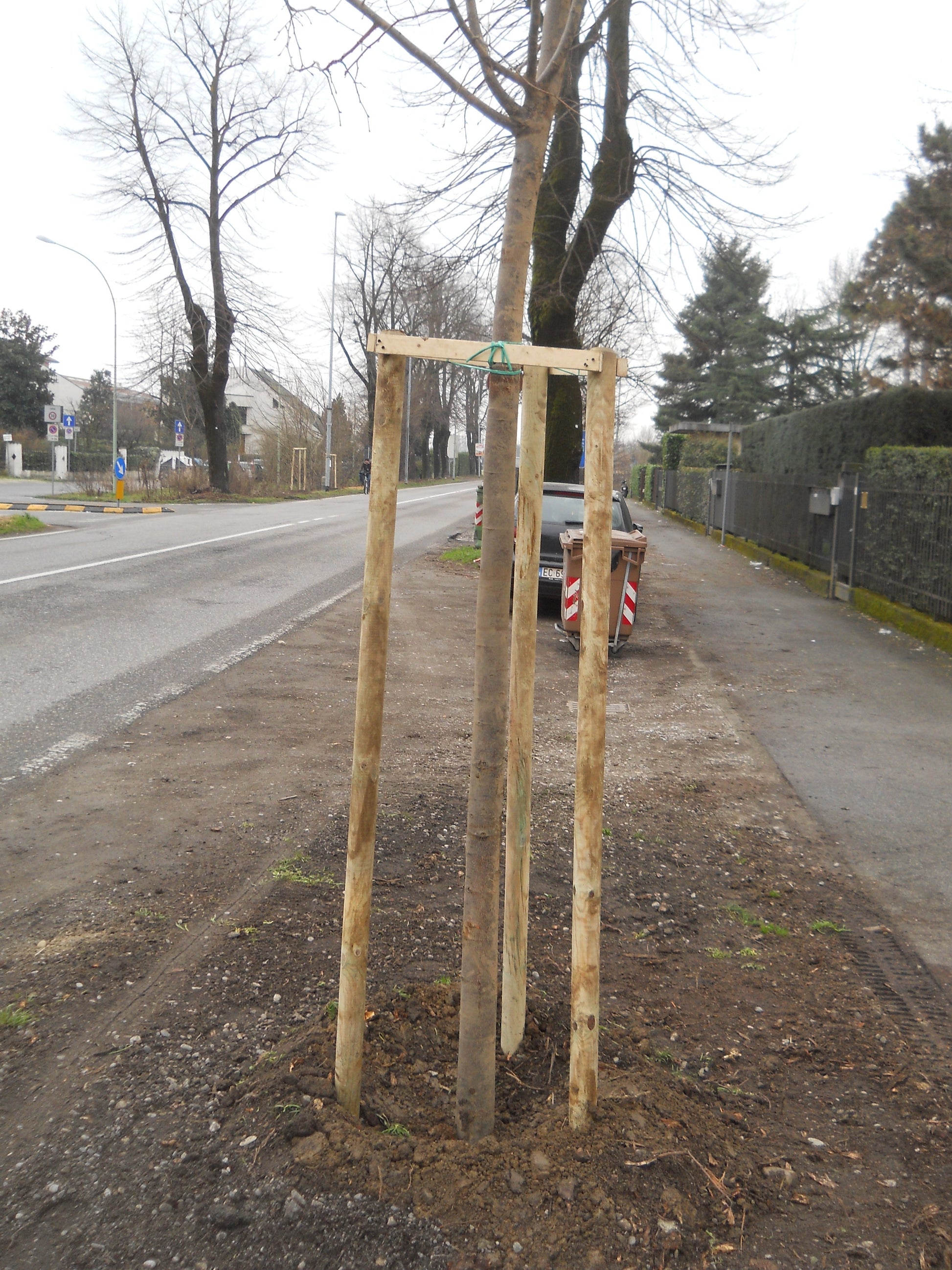 Double function: support for the plant and anchoring of the protection device (shelter)